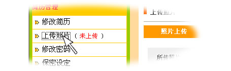 | 注冊成功后系統(tǒng)會自動跳轉(zhuǎn)到個(gè)人管理頁面,點(diǎn)擊“上傳照片”,上傳不大于100KB的照片,這樣更容易讓招聘企業(yè)青睞; |